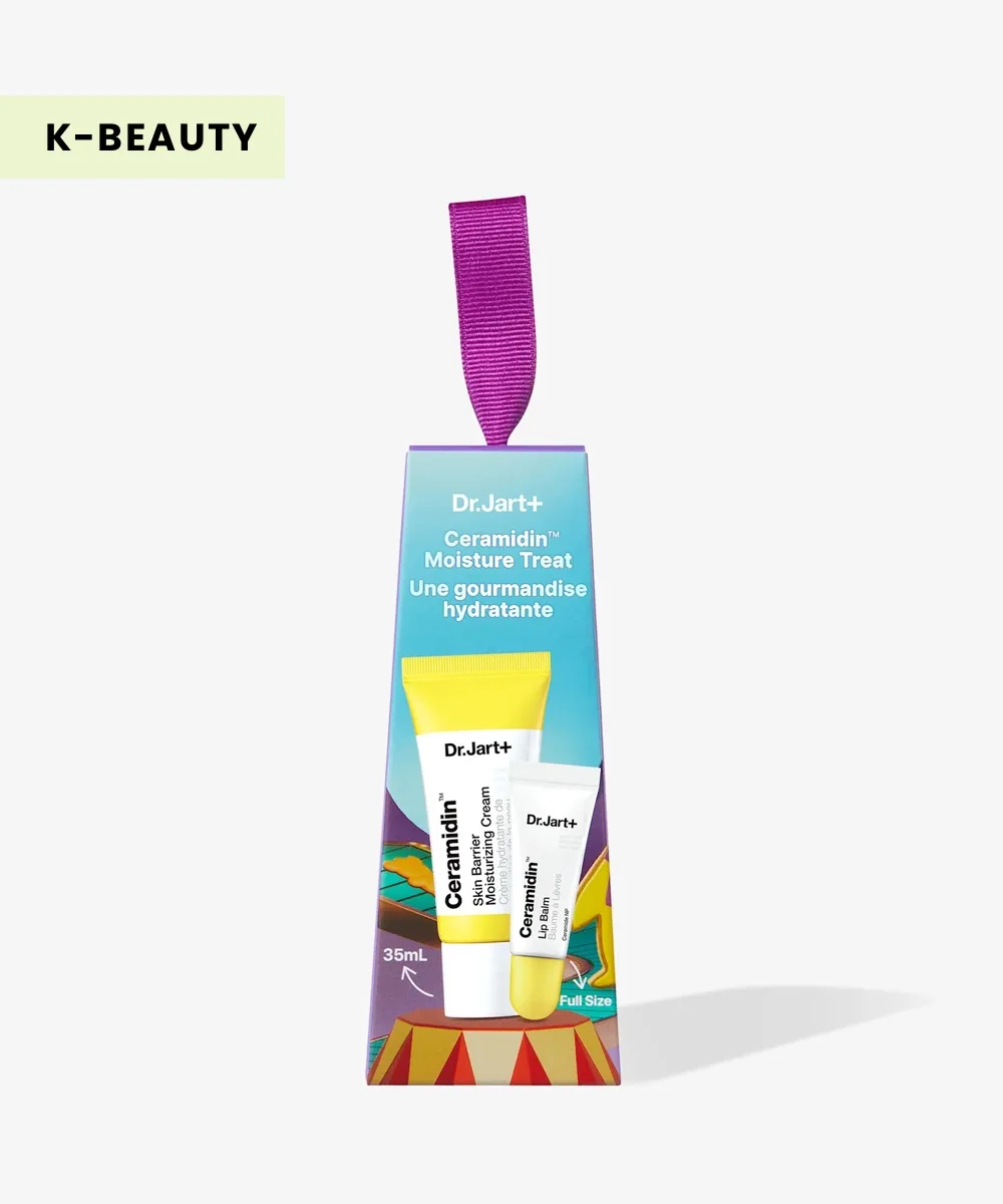 Meet the Dr. Jart+ Ceramidin Moisture Treat, your two-step solution for soft, supple skin. Powered by Dr. Jart’s signature 5-Ceramide blend, the Skin Barrier Moisturizing Cream strengthens your barrier, locks in moisture, and leaves skin bouncy and smooth with a rich-but-fast-absorbing texture. Paired with the Ceramidin Lip Balm, a jelly-like balm infused with Ceramide NP, it cushions and comforts dry lips for a healthy, glossy finish. Together, this hydrating pair delivers dermatologist-tested care that keeps dryness at bay and glow on display, no matter how cold it gets.