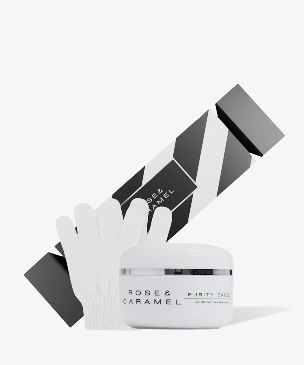- Purity Excel 60 Second Tan Remover (100 ml): Dieser preisgekrönte Bräunungsentferner, der bei TikTok viral geht, beseitigt schnell Streifen und Flecken. Einfach auftragen, eine Minute warten, abspülen und die Haut mit einem Peeling-Handschuh massieren. Deine Haut wird weich, glatt und bereit für die nächste Bräune und duftet dabei herrlich nach Mango und Granatapfel.