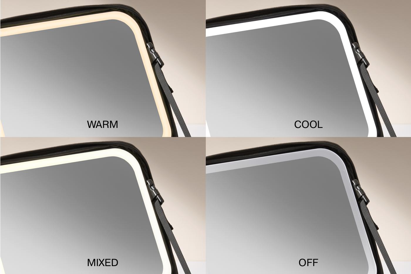 - To remove the mirror, simply unfasten it from the velcro. The mirror is rechargeable and can be easily reattached inside the case, making touch-ups a breeze whether you’re at home or on the go.