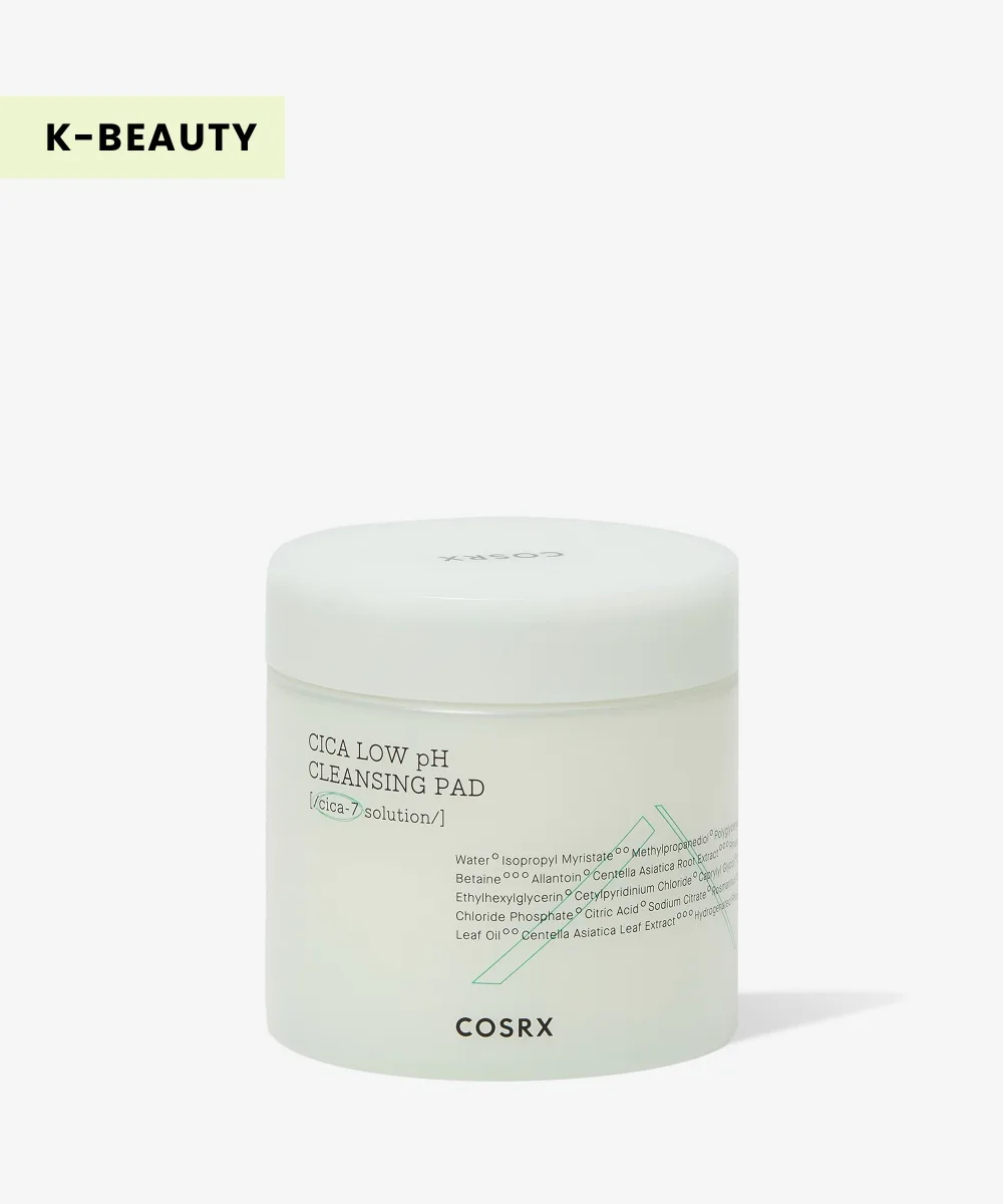 Upgrade your routine with COSRX’s Pure Fit Cica Low pH Cleansing Pad. The low pH pad had been soaked in the brand’s signature Cica-7 Complex to effectively cleanse the skin, remove makeup, and simplify your skincare routine. Washing your face with water alone removes 55.57% of dirt and pollutants, cleansing with foaming cleanser removes 76.58%, while COSRX’s pad wipes away 99.86%! Use the embossed side to effectively cleanse the skin and remove makeup and use the smooth side to eliminate impurities and calm troubled skin with the Cica-7 Complex.