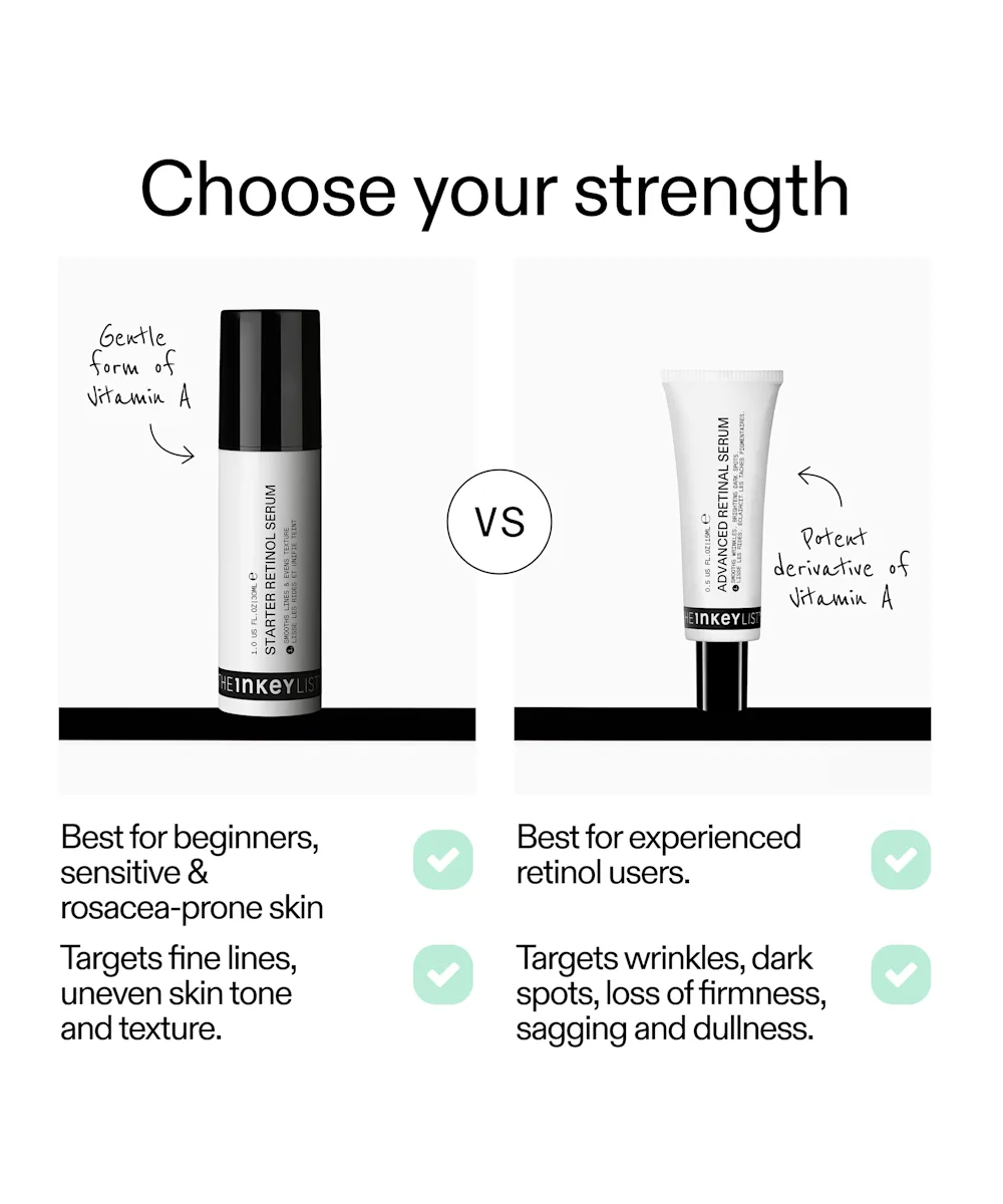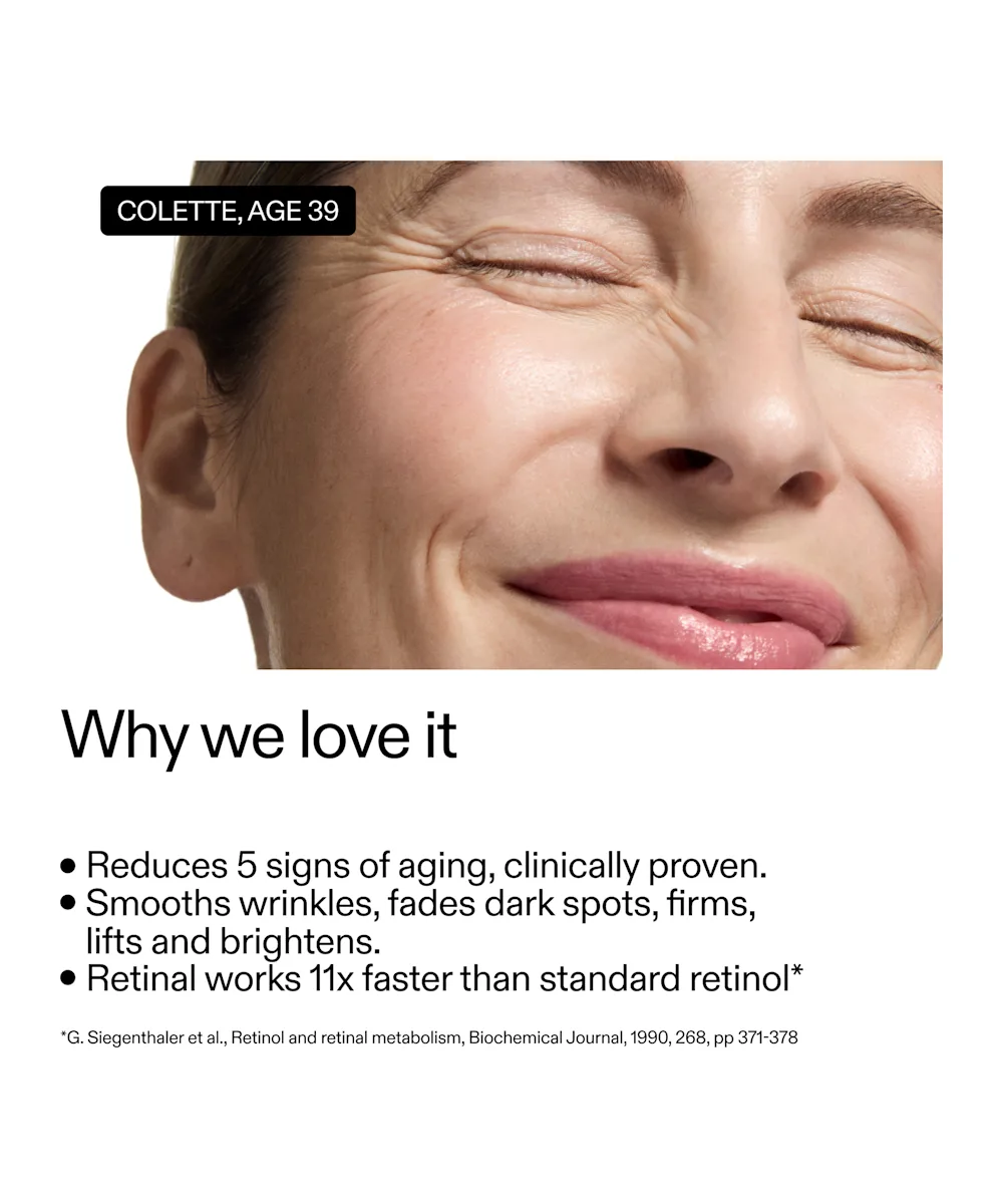 Say hello to visibly smoother, firmer, and more radiant skin with The INKEY List Advanced 0.2% Retinal Serum. This high-strength serum is formulated to target all five visible signs of ageing. It helps to smooth deep wrinkles, fade dark spots, lift and firm, and boost skin’s luminosity without irritation. The multi-action formula features 0.2% encapsulated Retinaldehyde, proven to work 11x faster than standard Retinol, and 2% Sirtalice™ to visibly lift, tighten, and smooth skin in as little as 30 minutes. Lightweight, hydrating, and fast-absorbing, it leaves skin feeling nourished, never dry, for a youthful, radiant complexion.